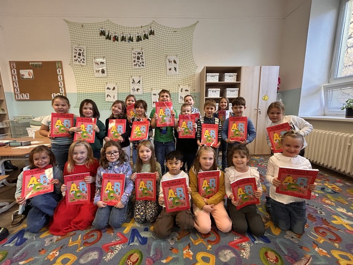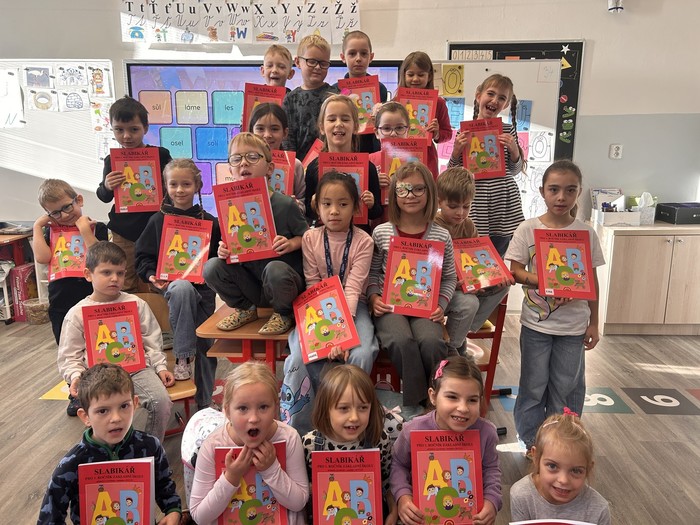 Dne 19. 11. 2025 proběhl ve třídách 1. A a 1. B slavnostní den. Roli učitelů a zároveň průvodců si v obou třídách vyzkoušeli žáci a žákyně z 9. B, kteří společně s vyučujícími 1. tříd pomohli celý „DEN SLABIKÁŘE“ nachystat. A právě s nimi si všichni naši prvňáčci otestovali, co se za první 3 měsíce naučili. Velkou odměnou jim byla nejen pochvala starších spolužáků, ale i vytoužený a očekávaný slabikář. Den jsme si všichni užili.