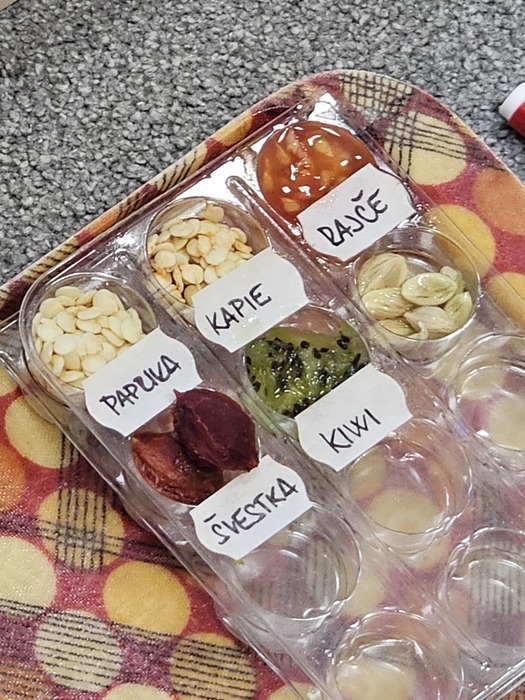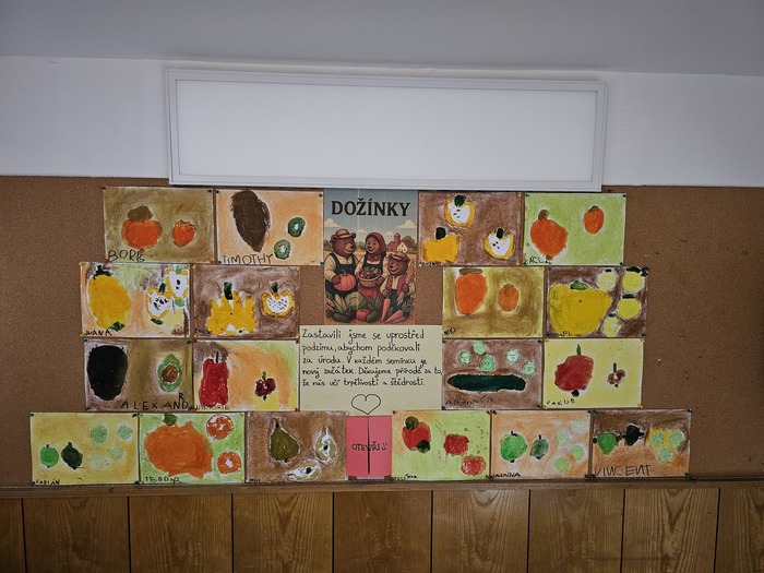Zima je tady a loučíme se s podzimem. Nezapomněli jsme přírodě poděkovat za hojnou úrodu, kterou nás obdarovala. Ochutnali jsme různé plody zeleniny a ovoce, prozkoumali seminka, jadérka i pecky a nakonec udělali tiskátka.