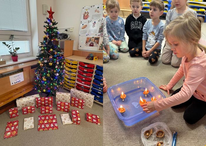 Navštívili jsme prostory naší základní školy a podívali jsme se do třídy Lvíčata, kde pro nás zaparkovalo Mobilní planetárium s tematickým programem. Přispěli jsme svými perníkovými ozdobami ke kráse školkového stromečku, který nám zpestřuje prostory před budovou mateřské školy. Vyrobili jsme si polštářky s vlastními obrázky díky recyklačnímu vzdělávacímu programu od Odpaďáčku. Vyzkoušeli jsme si různé vánoční tradice na vlastní kůži a v neposlední řadě nás navštívil Ježíšek, který k nám přinesl spoustu krásných dárků.
